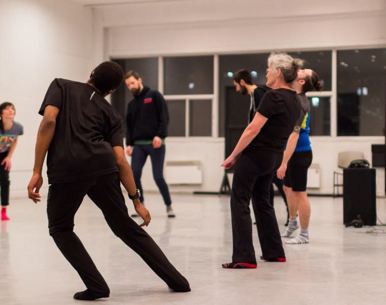 Au printemps 2019, une chorégraphe, en collaboration avec une danseuse professionnelle, un compositeur, une vidéaste et une poète, a invité une dizaine de personnes de la communauté sourde et malentendante du grand Montréal à participer à des ateliers explorant « un espace de création autour du corps en mouvement ».