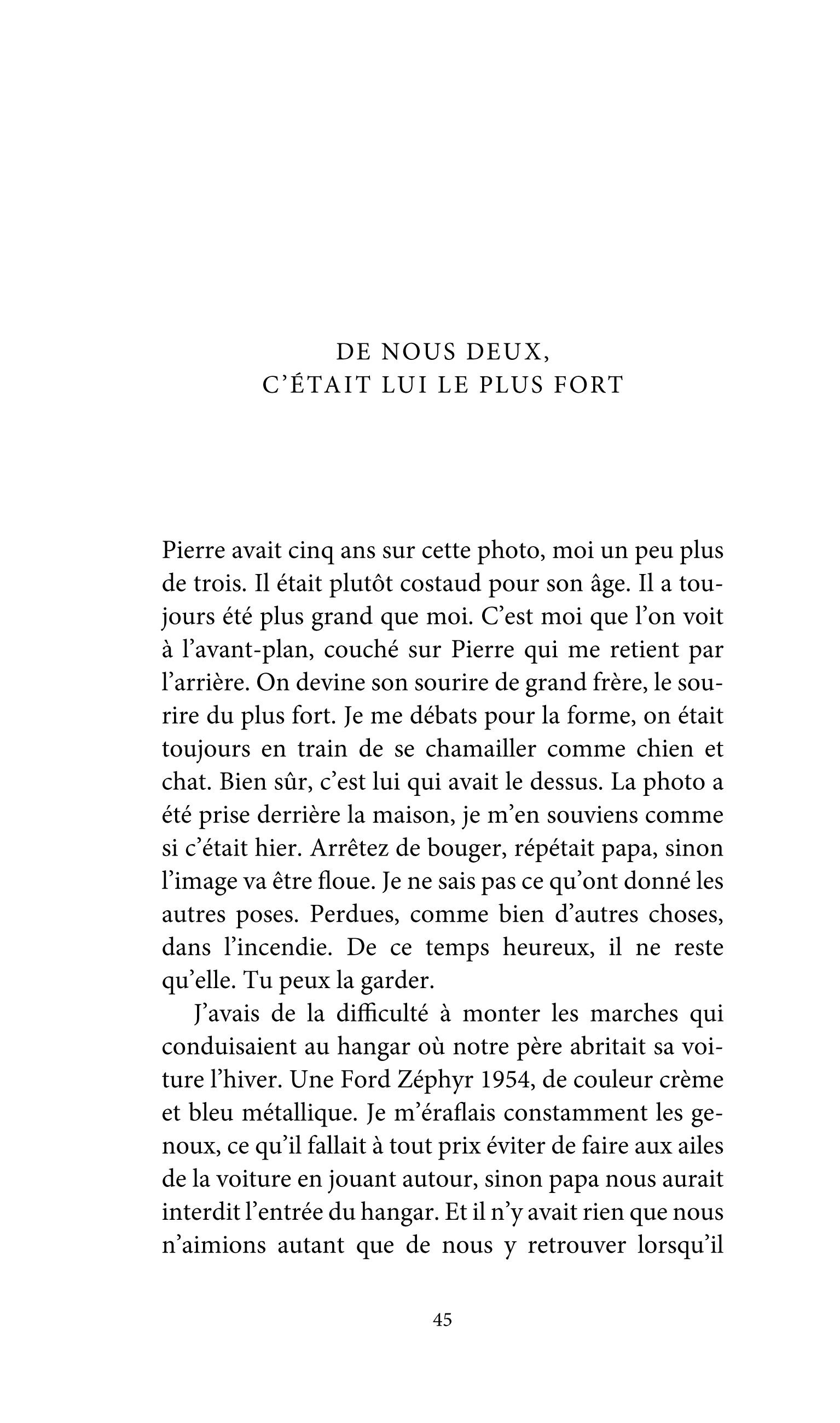 Qui ne s’est pas un jour interrogé à la vue d’une photo d’une personne, ou d’un groupe de personnes, en feuilletant un album de famille ou en visitant une exposition : qui sont ces gens ? que font-ils ? C’est à ces questions, et à bien d’autres, que j’ai tenté de répondre avec ce nouveau recueil de nouvelles dont chacune est inspirée par une photographie d’Anne-Marie Guérineau. Les réponses, qui, bien souvent, soulevaient d’autres questions, n’ont cessé de me surprendre d’un texte à l’autre. Chacune des photographies qui accompagnent les textes a ainsi servi de déclencheur, mais un même constat s’est chaque fois imposé : les mots prenaient rapidement le relais du visuel et me révélaient, par l’alchimie du verbe, une autre réalité. Y en a-t-il une plus vraie que l’autre ? Au lecteur d’en décider.