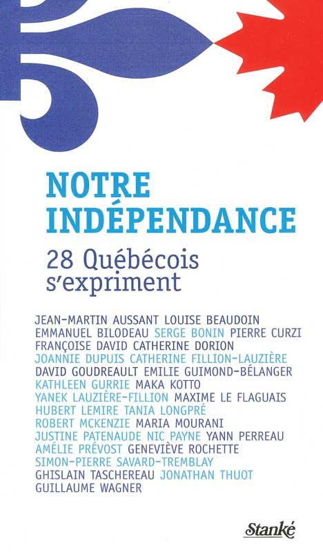 Collectif, Notre indépendance, 28 Québécois s’expriment, Stanké, Montréal, 2012, 204 p. ; 24,95 $.