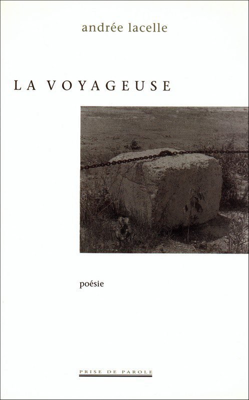 J’ai découvert la plume de Lacelle d’abord et avant tout dans La voyageuse, un recueil paru en 1995 chez Prise de parole. Si le titre laisse supposer qu’on aura affaire à un personnage féminin voyageant aux quatre coins du monde, c’est plutôt une métaphore du chemin et du déplacement qui se déploie dans l’œuvre. Ce recueil invite le lecteur à suivre les pérégrinations d’un personnage féminin éponyme. Cette voyageuse ne se déplace pas d’une région ou d’un pays à un autre, mais migre dans un territoire abstrait, épuré de références géopolitiques. Les poèmes lacelliens évoquent par les métaphores du chemin et du voyage le déplacement intérieur de la voyageuse. Cette absence de référents identitaires ou spatiaux ouvre vers l’universel.