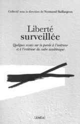 4. Normand Baillargeon (sous la dir. de), Liberté surveillée. Quelques essais sur la parole à l’intérieur et à l’extérieur du cadre académique, Montréal, Leméac, 2019, 272 p. ; 22,95 $.