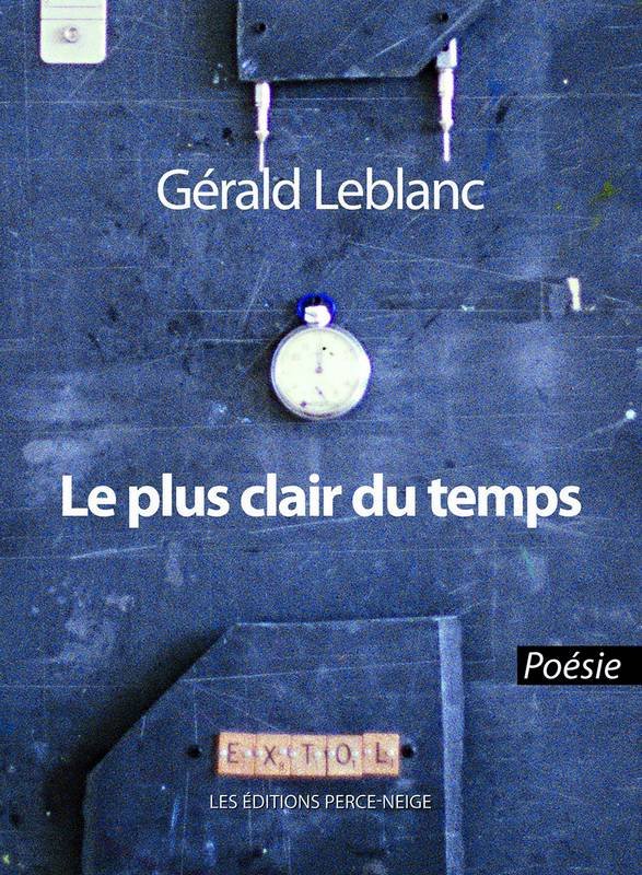 Les poèmes de Gérald Leblanc respirent au rythme de la vie quotidienne, habités par le regard parfois inquiet, parfois serein de leur auteur. Dans Le plus clair du temps (Perce-Neige, 2001), Leblanc nous invite à l’accompagner dans une promenade toute simple dans les rues de Moncton. Marcher dans la rue, faire l’épicerie, s’installer à une terrasse, écouter de la musique, acheter un livre, lire un texte, regarder les étoiles, prendre l’autobus… Et, par-dessus tout, rendre compte de sa ville, ce Moncton qui est au cœur de son œuvre depuis le tout début. En arrière-plan, la relation amoureuse toujours présente, elle aussi, depuis le premier recueil, et les 50 ans du poète. Le temps passe et la nécessité de saisir le temps passé traverse tout le livre, comme nous l’indique le chronomètre autour duquel se construit l’œuvre de Mathieu Léger, qui orne la très belle page couverture.
