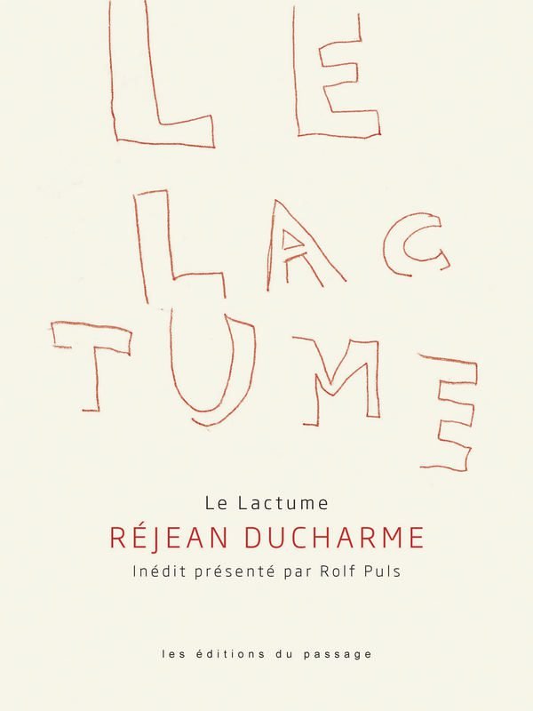 1. Réjean Ducharme, Le Lactume,inédit présenté par Rolf Puls, Du passage, Outremont, 2017, 246 p. ; 44,95 $.