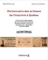 1. Rémi Ferland et Jean Levasseur, Dictionnaire des artisans de l’imprimé à Québec où l’on trouve des notices sur les imprimeurs, éditeurs, libraires, relieurs, graveurs, papetiers, etc., de Québec de 1764 à 1900, Huit, Québec, 2017, 1 082 p. ; 70 $.