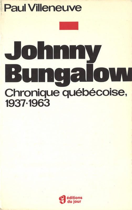Que raconte ce roman ? Au tribunal, Jean Martin, alias Johnny Bungalow, se défend d’un crime dont les circonstances exactes seront connues plus tard. Johnny explique au juge et à la cour son rôle dans une affaire où il est « accusé de tentative de meurtre, d’assaut, etc. » Ses propos ressemblent à ceux d’un sympathisant felquiste, sympathie dont l’accusera justement Perry, son beau-père. Sa défense, c’est le roman que nous lisons, « la vie de deux générations d’hommes et de femmes […] ayant vécu dans la misère ». Cette plaidoirie initiale couvre dix pages, après quoi on retourne en arrière pour suivre le périple de la famille Martin de Montréal jusqu’en Abitibi, nouvelle terre promise, où le père succombe à un bête accident de travail impliquant un cheval, clin d’œil à l’Angéline de Montbrun de Laure Conan. On assiste ensuite au retour de la mère et des enfants à Montréal, à leur vie difficile, à la prise de conscience politique de Jean, devenu Johnny à la faveur de la rencontre de sa mère avec Perry, le père adoptif anglophone (qui s’exprime également dans un français impeccable). Son frère Marc va tranquillement se ranger. André, son autre frère, sombrera lentement dans une folie dont il ne se sortira plus. Le récit nous conduit jusque sur la Côte-Nord et ses installations hydro-électriques, nouvelles à l’époque, où la révolte de Johnny prend une dimension collective et le mène aux multiples comptes qu’il entend régler avec lui-même, avec son passé de colonisé et, surtout, avec ce père adoptif qui cristallise une bonne partie des griefs de Johnny. Johnny aime pourtant Perry au point de s’être fait tatouer leurs prénoms côte à côte sur le bras gauche. Après une tentative de meurtre sur la personne de Perry, Johnny fuit vers les États-Unis, pourchassé par la police.