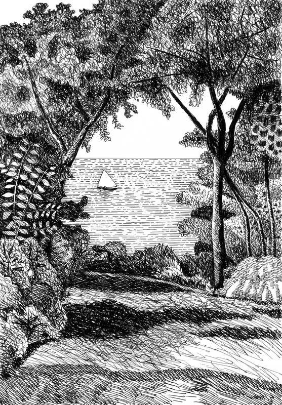 * Dessin de Richard Aeschlimann tiré de La grotte de Vénus (réédition L’Âge d’Homme, 2012).