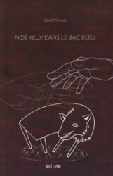 La voix qui tisse la trame de Nos yeux dans le bac bleu2 s’élève et se bat pour rester fidèle à l’indomptable en soi : « [S]ans la petite / sans le chien / mes veines affolées / se prennent pour des branches / et j’attends / la coupe à blanc ». Sans cette connexion à sa fibre profonde, sans ces présences du chien et de la petite qui l’accompagnent tout au long du livre, la narratrice pourrait se perdre. Dans la figure canine, indocile autant que sage, et dont le motif se répète presque jusqu’à l’obsession tout au long du livre, la poète a peut-être trouvé un miroir, un compagnon, un moteur. Dans celle de la petite, Sylvie Nicolas entretient la curiosité face à la vie, ouvre la porte à la parole pour modeler, pour transformer le morne en quelque chose d’éclatant. C’est un engagement entier de la poète que je retrouve d’un livre à l’autre, et qui passe par une proximité avec cette part ensauvagée, sensible et empathique d’elle-même.
