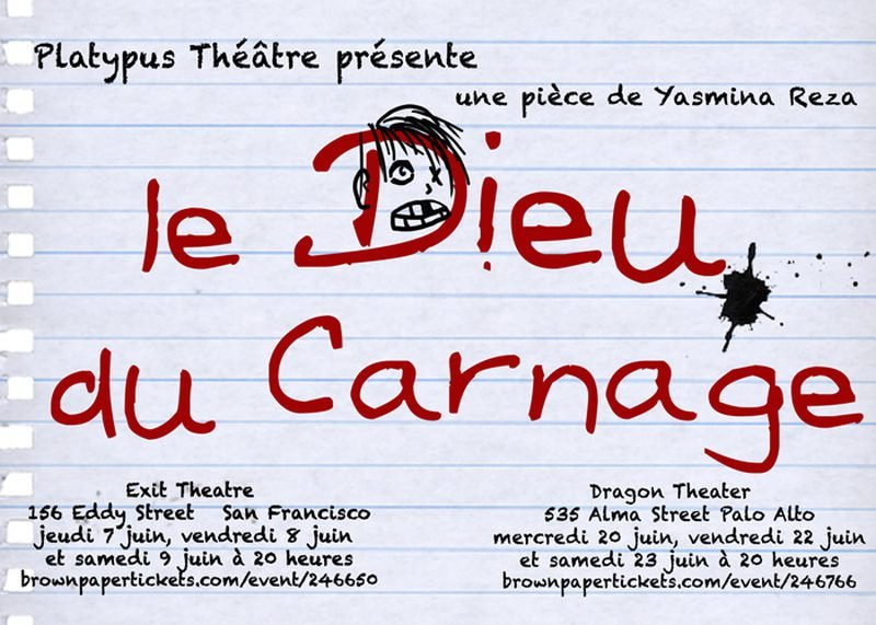Comédienne elle-même, Yasmina Reza se devait d’écrire ses propres pièces et de les plier à sa loi. Le dieu du carnage arrache le mince derme qui cache la tenace barbarie humaine. Deux couples, fiers de leur raffinement, se rencontrent pour régler dans le savoir-vivre l’empoignade qui a opposé leurs fils. Mamours, mains tendues, concessions éthérées, confidences généreuses, rien n’attente à l’inégalable délicatesse. Malgré tout, imperceptiblement, le fiel perce le vernis et l’apaisement tourne court : injures, procès d’intention, blâmes s’ensuivent et la porte ponctue de son claquement la réapparition des visages haineux.