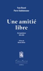 Pierre Vadeboncœur a entretenu plusieurs correspondances avec des essayistes, des philosophes, des romanciers, des journalistes, voire d’anciens camarades de classe devenus politiciens2. Celle qu’il a eue avec Yvon Rivard, regroupée sous le titre Une amitié libre, fait référence à un ouvrage de Vadeboncœur paru en 1970, Un amour libre. Elle prend naissance au moment où Rivard s’apprête à entreprendre une carrière universitaire. La rencontre avec Pierre Vadeboncœur a lieu chez François Ricard peu après la parution d’un ouvrage que le second avait consacré au premier et auquel Rivard avait participé. S’engage alors une conversation, aussitôt suivie par un échange de lettres qui s’étendra sur près de quarante années. Assidue à ses débuts, la correspondance qu’ils ont entretenue au fil des ans gardera la même intensité, la même richesse malgré d’inévitables interruptions. Sitôt qu’ils renouent, l’échange reprend avec la même exigence, la même force d’amitié. Pour Vadeboncœur, l’expression écrite n’a rien d’anodin. C’est presque l’âme même, écrit-il dans L’absence. « Et puis ces lettres offraient non seulement des représentations de nos vies, y écrit encore Vadeboncœur, mais la sensation de celles-ci, autant dire l’expérience même, par le truchement de quelque chose qui est lui-même expérience3. »