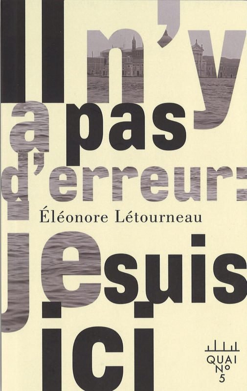Dans son dernier livre, Il n’y a pas d’erreur : je suis ici, Éléonore Létourneau déclare avec tendresse son amour pour la cité des Doges. Sa fine compréhension de cet endroit sublime, loin des lieux fréquentés par un tourisme de masse souvent irritant, fait plaisir à lire. « Il y a donc une vie normale, à Venise. Les gens construisent, achètent et meurent. Tout au bout, les eaux calmes de la lagune, et le cimetière qui y siège, cimes pointant vers le ciel. »